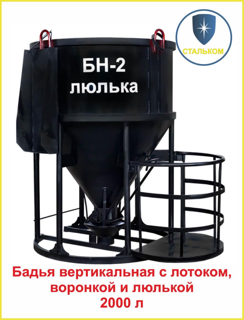 - БН-2-3 Бадья вертикальная 2000л с лотоком, воронкой и люлькой