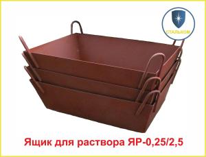 Ящики для раствора и бетона используют для хранения, замешивания и перемещения раствора на строительной площадке. На ящиках имеются строповочные петли для транспортировки техникой. Ящики изготавливаются из металла толщиной 1,5 / 2,0 / 2,5 / 3,0 мм.Характеристики